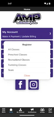 The Amp Athletics app allows you to manage your account with ease, register for classes, teams, and special events. You'll also receive important notifications about schedule changes, upcoming registrations, events, and more. The app is an easy-to-use, on-the-go way to access everything Amp has to offer right from your smartphone.
