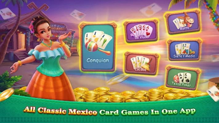 Conquian Gratis is a classic poker game in Mexico. This app contains Mexican local poker games such as Conquian, Texas Poker, Siete Y Media, Burro, Slots, La Viuda and Escoba. The inner graphics are exquisite, the game rules are fair and just. You can easily win plenty of chips and super-valuable rewards while playing.