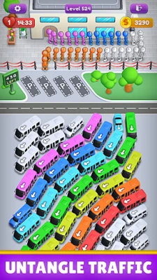 Navigate a chaotic station where car jams and parking jams collide with colorful puzzles. Strategically move buses and cars, clear the traffic jam, and sort passengers onto their correct buses. Every level is a bus mania challenge, testing your skills in traffic management and color matching. Can you bring order to the station and solve the bus escape puzzles?