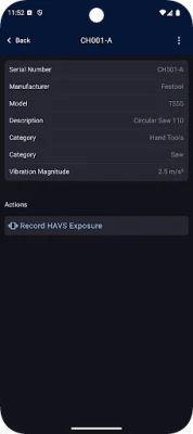 The Ctrl Hub mobile app allows you to record HAVS (Hand-Arm Vibration Syndrome) exposure to vibrating equipment and, from your Trigger Time, calculates your Partial Exposure Points and likely EAV (Exposure Action Value) status. You can also view details of your Vehicles and record Walkaround Inspections to keep a regular record of their condition.