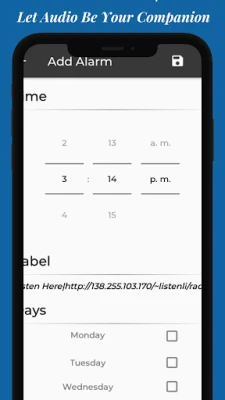 ⏰ You can also set alarms in the Wake up Alarm section to get up in the morning listening to your favorite station.