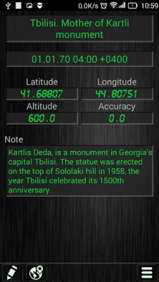 - Shows Latitude, Longitude, Altitude, Accuracy, Date/Time. Satellites in view, found, used. Location updates and reading attempts.