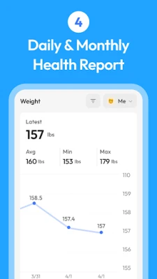 - Health tracking: Weight,BP, glucose & HbA1C, water(daily hydration), body temperature, SpO₂, mood, and more based on your suggestions