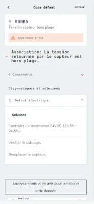 For a given fault code, you can retrieve the cause and solutions pertinent to the crane components this fault code is connected to. This app is dedicated to qualified aftermarket technicians, trained for the comprehensive understanding of the content published. Within the app, please feel free to send us a feedback to improve the data!