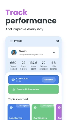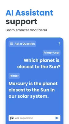 Primer uses an adaptive learning algorithm to quickly identify your current knowledge and recommend new topics to study. After an initial assessment, you will be given lessons on useful topics that build on what you already know.