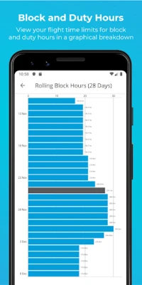 • Block and duty hour graph breakdowns, flight time limits, see your personalized career statistics. export your logbook, your calendar, and lots more!