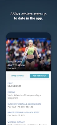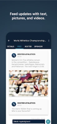 Roster brings you athletics competitions! You can easily follow meetings with the Roster app - see start lists, get live commentary and results, learn about your favorite athletes, and watch videos.