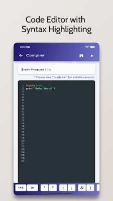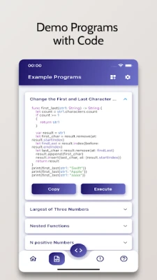 Swift Compiler is an Advanced IDE enabling you to compile Swift Programs on your Mobile Phone for Free. It comes with a code editor with in-built syntax highlighting capabilities.