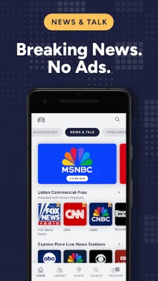 All News, No Commercials: Remove the ads on all your favorite news networks and hear 5+ hours of bonus content every day on CNBC, CNN, FOX News Radio, MSNBC, and more.
